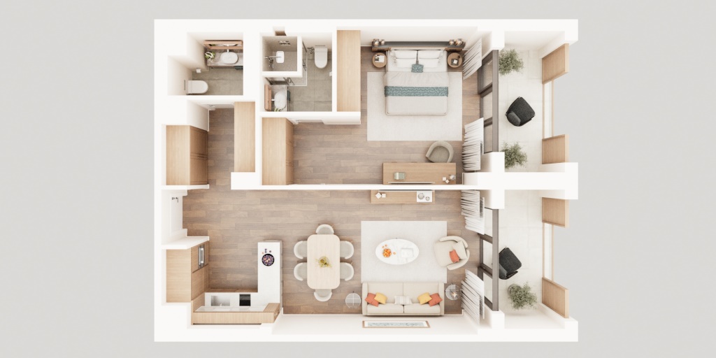 • 1-Bedroom: 65.51 m² – 98.83 m²